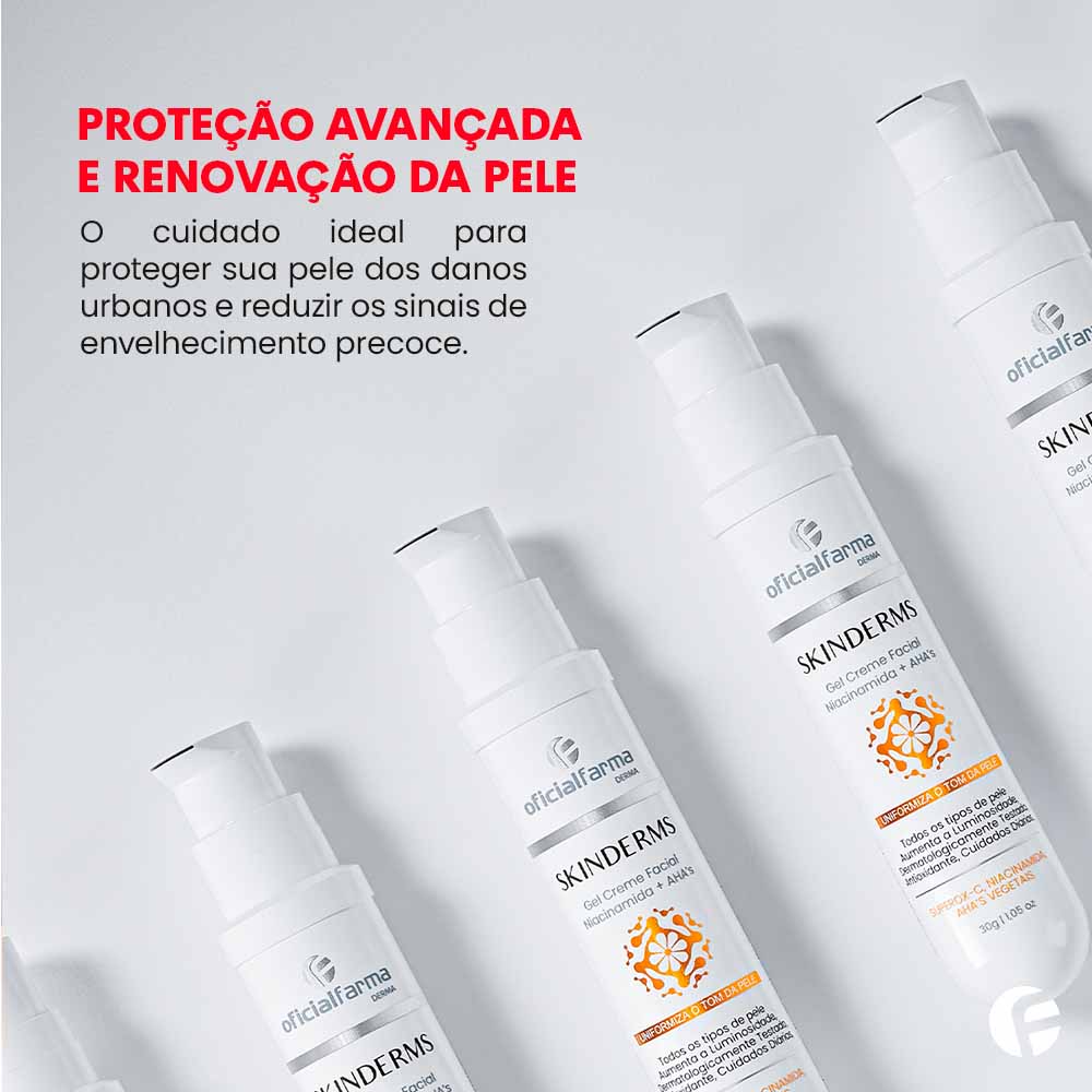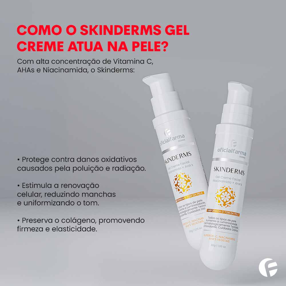 A linha Skinderms foi desenvolvida para pessoas modernas, com rotinas urbanas que se expõem diariamente a: Poluição, tabaco, metais pesados, radiação solar, estresse oxidativo entre outros. Tratamento intensivo desenvolvido com Ameixa Kakadu Plum, UMA SUPER FRUTA COM 100X MAIS VITAMINA C DO QUE A LARANJA! Remove as impurezas, fortalece as barreiras naturais da pele, combatendo os fatores degenerativos e contaminantes que aceleram o envelhecimento precoce. SKINDERMS protege as proteínas da pele, promove a manutenção do colágeno e da elastina.